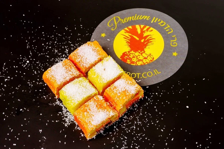 תות שדה, מלון, אננס, קוקוס טרי,תפוז, אשכולית אדומה, אפרסמון, קרמבולה, פסיפלורה,תפוז סיני, קווי