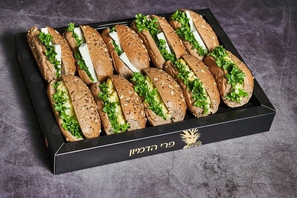 כריכוני ביס לחם לבן/מלא ממולאים: גבינות / סלט טונה / אומלט / סלט ביצים