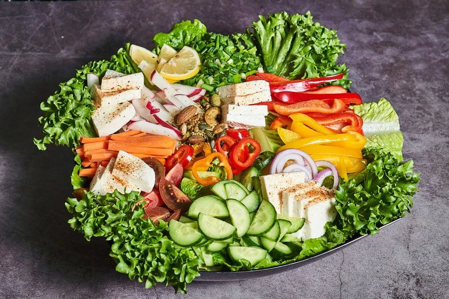סלט יווני: סלט ירקות עשיר בתוספת גבינה בולגרית