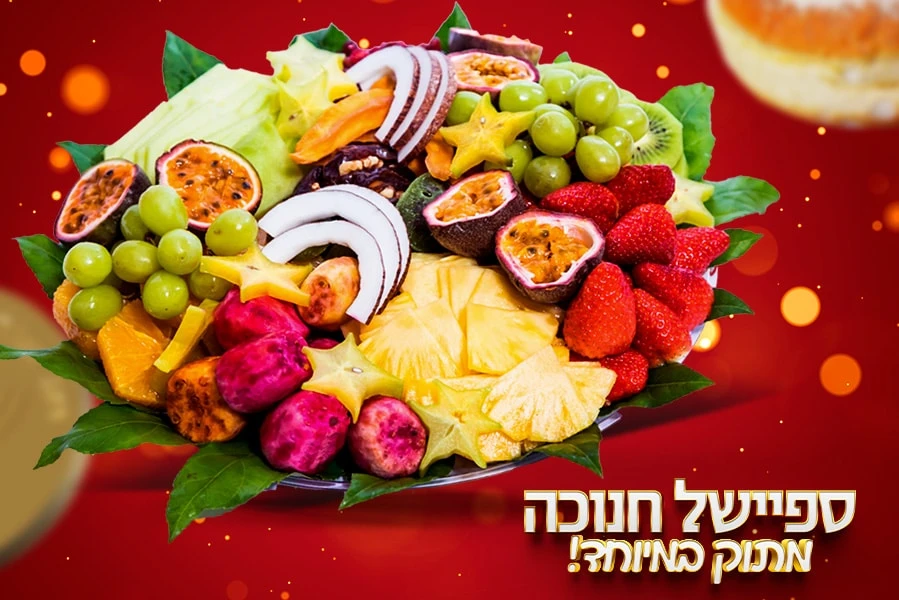 הספיישל שלנו לחנוכה מואר טעים ומתוק במיוחד! 3 סופגניות בטעמים שונים (ריבה,סוכריות,ריבת חלב) מיקס סושי הבית: סושי פירות, סושי שוקולד, סושי פיסטוק, סושי אוראו, סושי בננה כדורי שוקולד טעימים וצבעוניים, 4 יח' מקרון בטעמים פירות חתוכים (תות שדה, אננס, מלון, פומלה, קוקוס טרי ועוד...)
