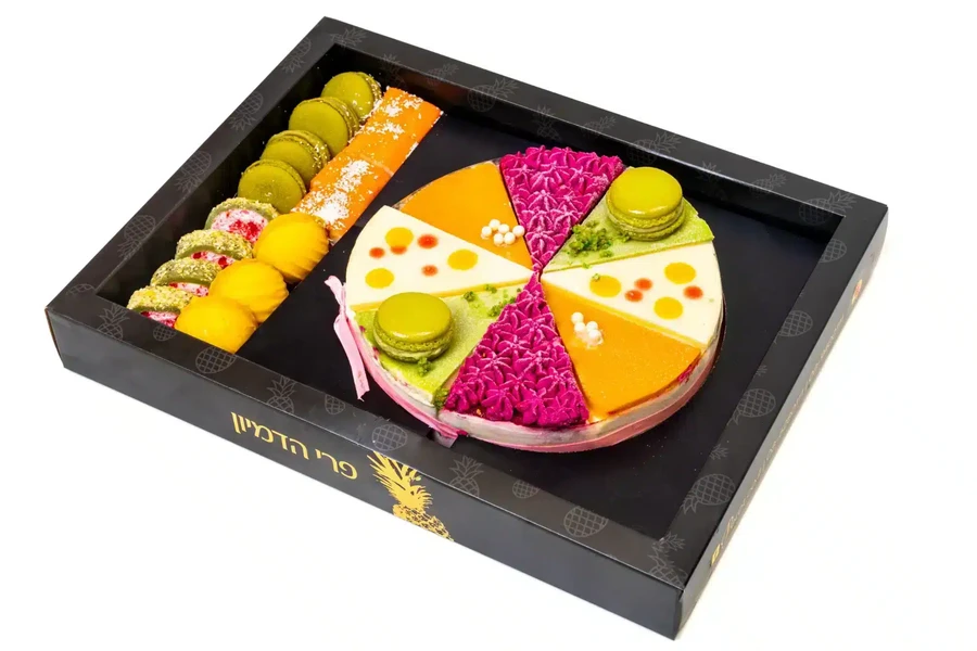 במיוחד לחוגגים, מארז עוגת פיסטוק מעוצבת: שכבה קראנצ'ית של באטר קראסט, קרם וניל וצאנקים של שוקולד, קרם פיסטוק עשיר, בציפוי שוקולד לבן פיסטוק. בשילוב מיקס קינוחים לצידה: 4 יח' מקרון, 4 יח' סושי פירות, 3 יח' בול קרמבו, 4 יח' סושי פיסטוק. מוגש במארז קרטון יוקרתי עם מכסה שקוף אלגנטי במיוחד!